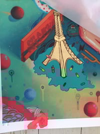 Giclee oil-based archival inks. 23kt gold leaf and enamel spot varnish on cold press rough textured Natural White 315gsm paper. hand-finished